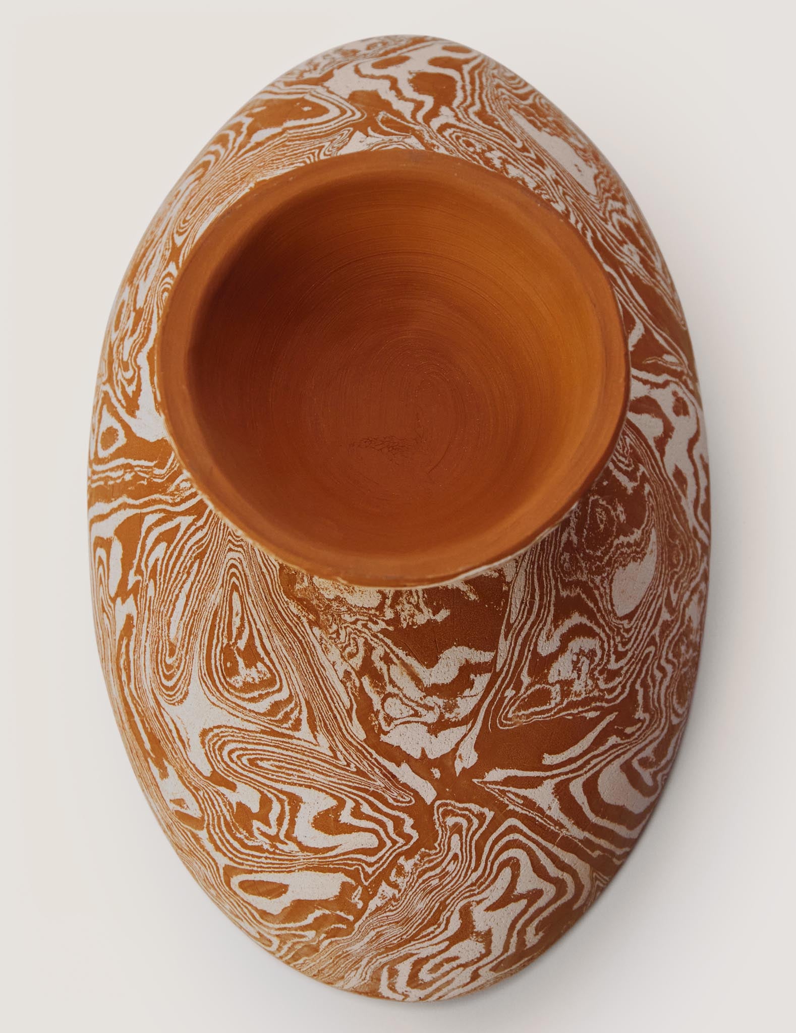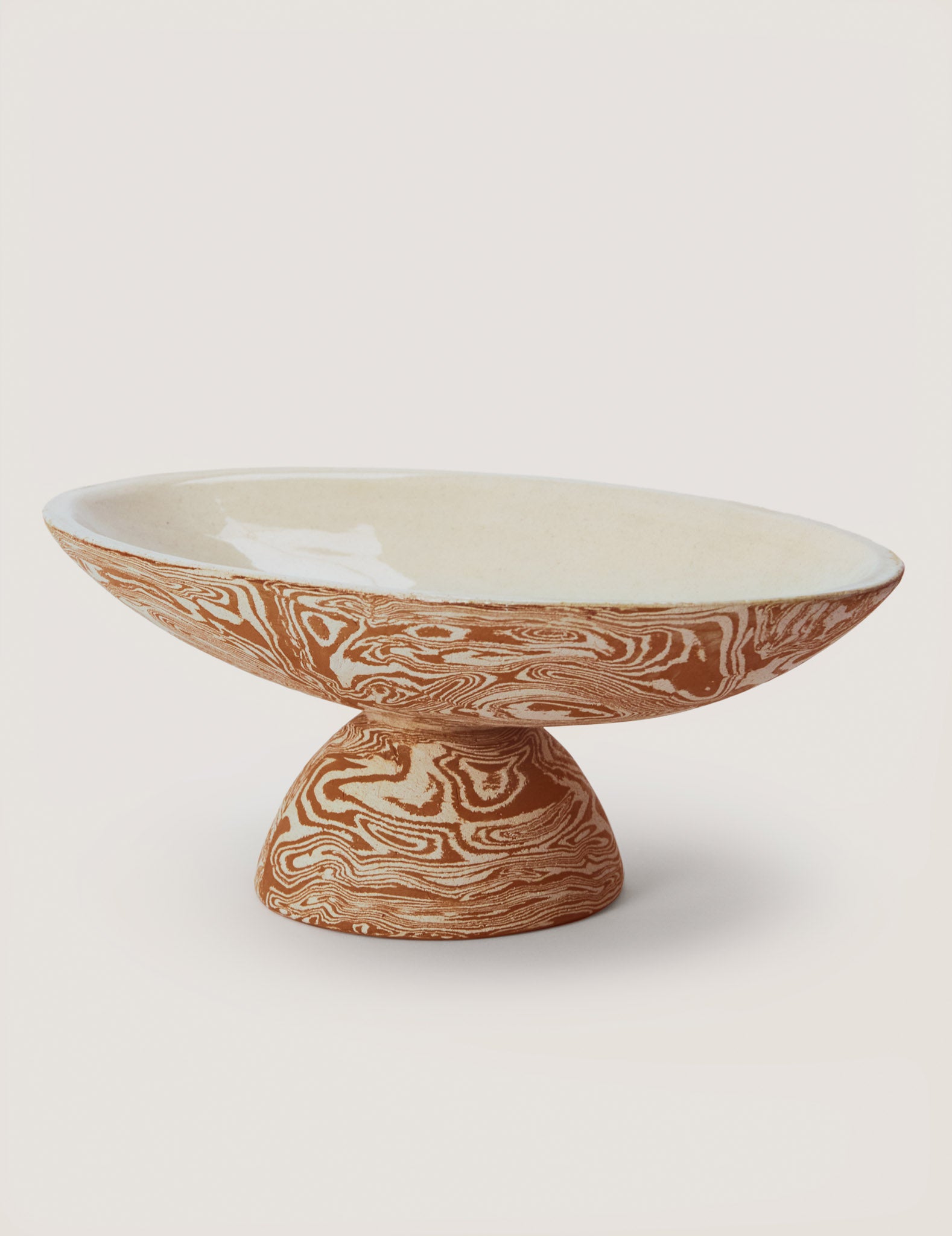 Crafted using the ancient technique of Nerikomi, each dish features a unique and organic pattern. Handcrafted locally in Valencia from our signature marble clay blend, the raw, textured exterior contrasts with the smooth, glazed interior, creating a piece that's as functional as it is beautiful.